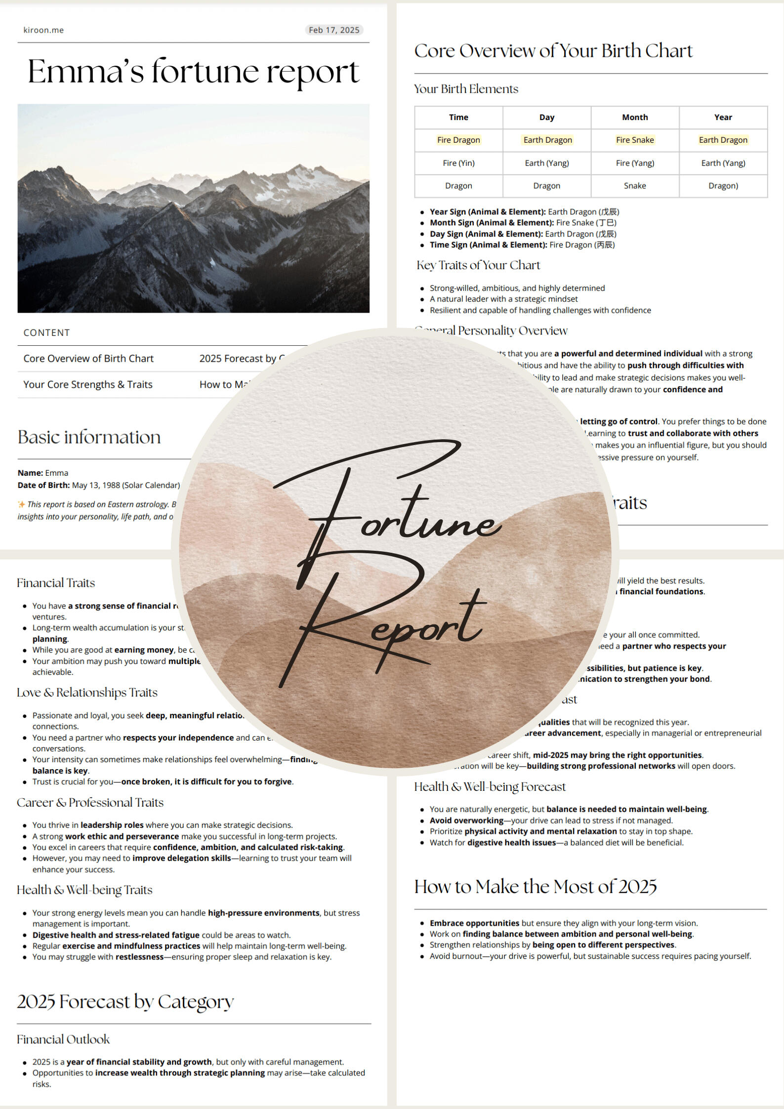 At Kiroon, we genuinely want to help people understand themselves better and live a more fulfilling life. We believe that everyone deserves a chance to discover their unique strengths and life path—and that journey starts with the right insights.This free report is our way of introducing you to the power of Eastern astrology and how it can bring real clarity to your life. It’s not just about predictions—it’s about helping you make sense of where you are and guiding you toward a better future.We hope that once you see the value of these insights, you’ll continue your journey with us—whether that means diving deeper into your destiny or simply making more confident choices in your everyday life.
